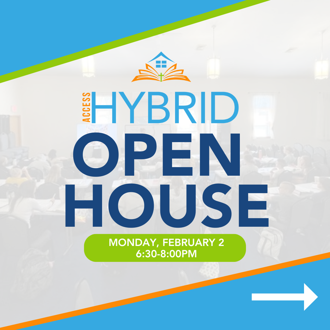 Join us at our Access Hybrid Open House to learn more about our Christian Homeschool Co-Op and see if we would be a good fit for your family!